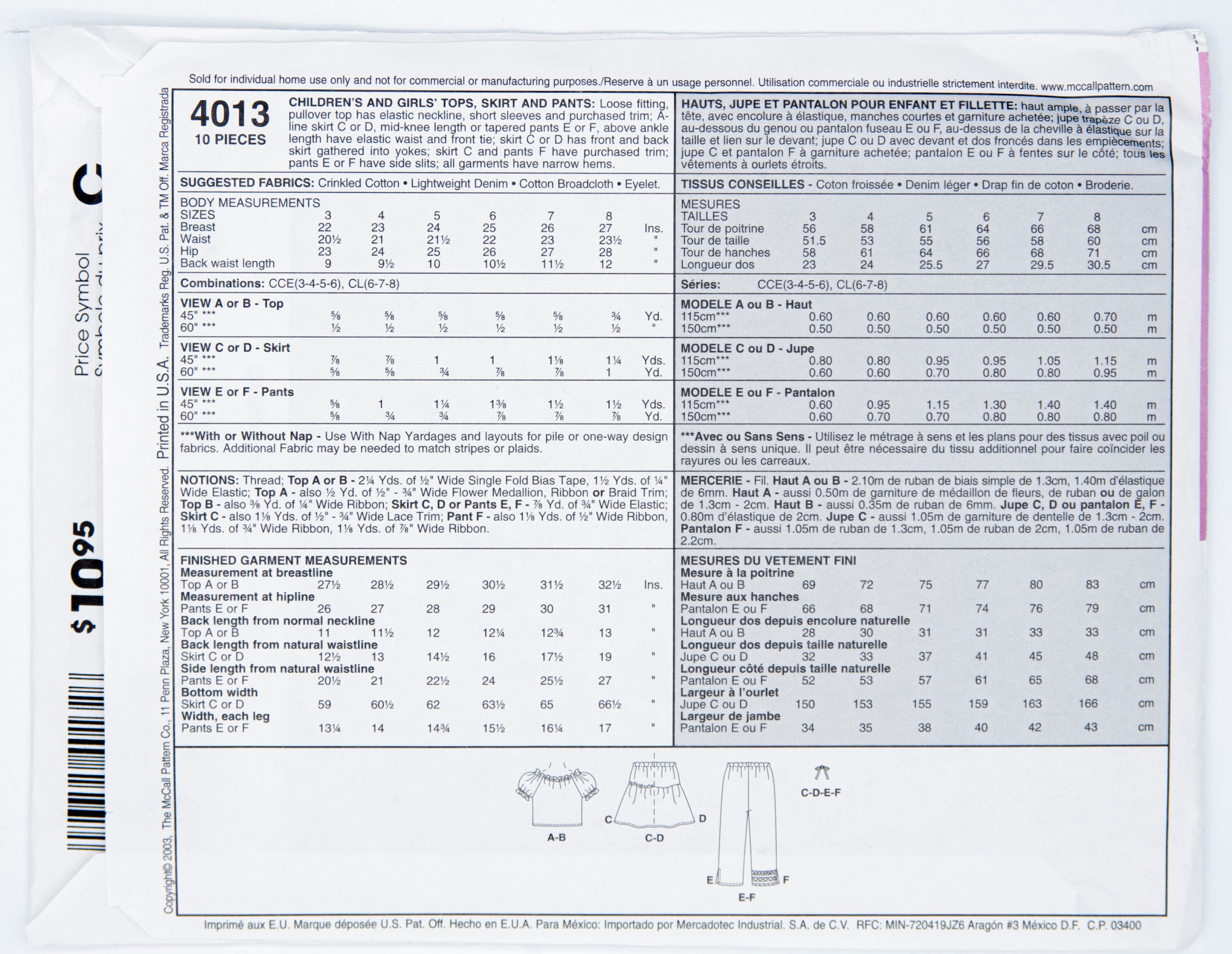 . Fill Your Cart With Color today. Shop McCalls patterns for kiddos and adults in all shapes sizes. Girls Top Skirt and Pants.
