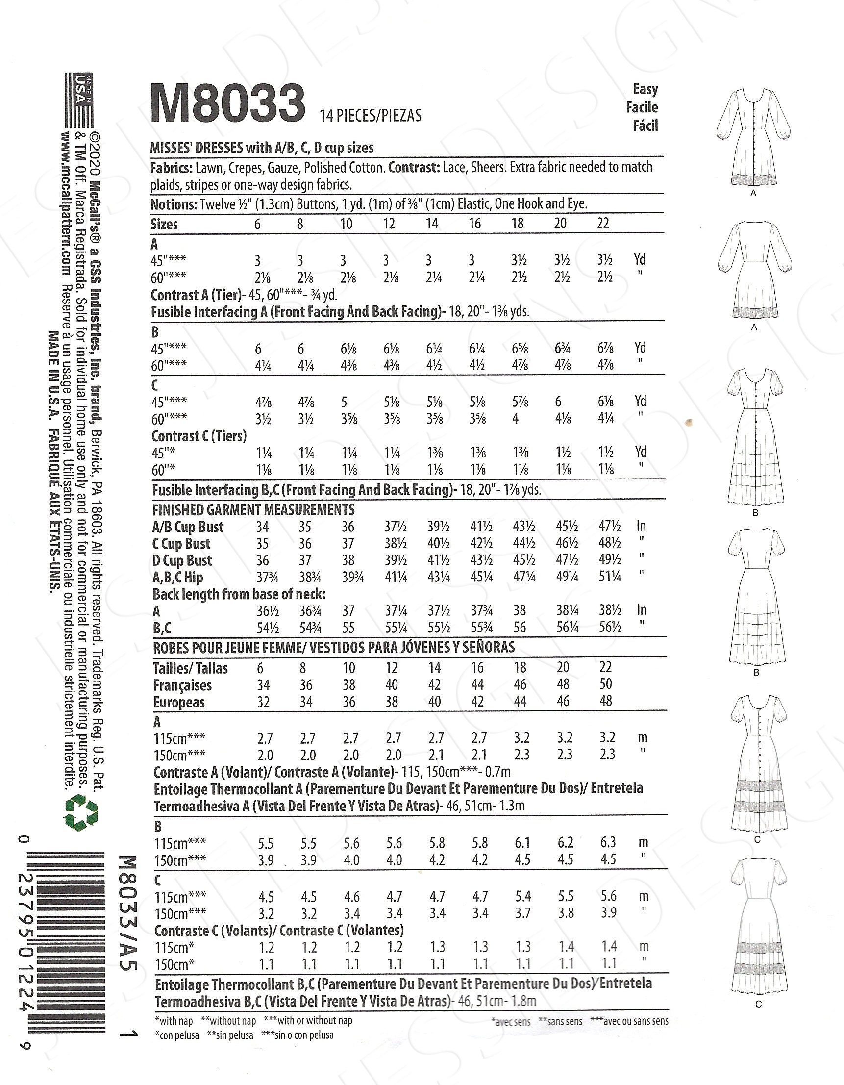 Uncut Mccall S Sewing Pattern M8033 8033 Sophia Etsy